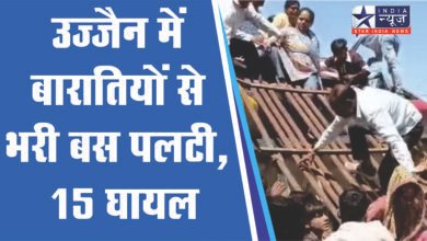 उज्जैन में बारातियों से भरी बस पलटी, 15 घायल:सड़क निर्माण के बीच ओवरटेक करने से हादसा, इंदौर से खाचरोद जा रही थी
