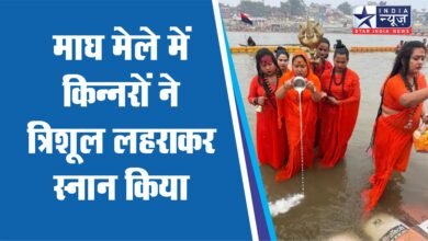 माघ मेले में किन्नरों ने त्रिशूल लहराकर स्नान किया:2 फर्जी बाबा पकड़े गए, सपा कार्यकर्ता ने मुलायम की फोटो संग लगाई डुबकी