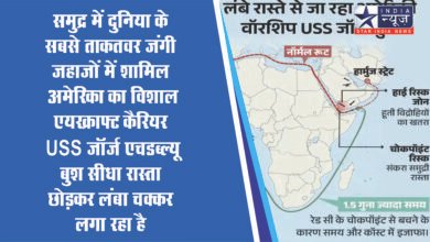 समुद्र में दुनिया के सबसे ताकतवर जंगी जहाजों में शामिल अमेरिका का विशाल एयरक्राफ्ट कैरियर USS जॉर्ज एचडब्ल्यू बुश सीधा रास्ता छोड़कर लंबा चक्कर लगा रहा है
