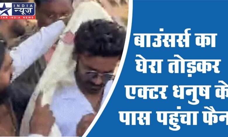बॉलीवुड अभिनेता धनुष, अभिनेत्री कृति सेनन और निर्देशक आनंद एल. रॉय सोमवार को अपनी फिल्म ‘तेरे इश्क’ के प्रमोशन के लिए जयपुर पहुंचे। एक्टर्स को देखने के लिए जयपुर एयरपोर्ट पर फैंस इकठ्ठा हुए। इस दौरान एक फैन बाउंसर्स का घेरा तोड़कर धनुष की गाड़ी तक पहुंच गया, धनुष को शॉल पहनाकर स्वागत किया।