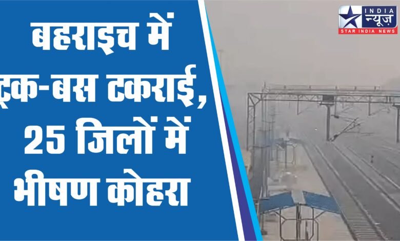 बहराइच में ट्रक-बस टकराई, 25 जिलों में भीषण कोहरा:राम मंदिर छिपा, पहाड़ों पर बर्फबारी शुरू, यहां गलन बढ़ेगी