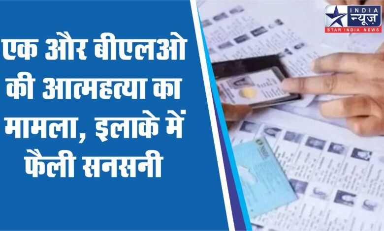 स्टार इंडिया न्यूज़ प्रतिनिधि जयपुर | राजस्थान में एक और बीएलओ की खुदकुशी का मामला सामने आया है। ताजा मामला कोटपूतली-बहरोड़ जिले के प्रागपुरा थाना क्षेत्र का है। जहां बीएलओ विजय कुमार गुर्जर ने खुदकुशी कर ली। 42 वर्षीय बीएलओ का शव गुरुवार सुबह नीम के पेड़ से लटका मिला। इस घटना से पूरे इलाके में सनसनी फैल गई। ग्रामीणों की सूचना पर पुलिस मौके पर पहुंची और शव को नीचे उतारकर जिला अस्पताल भिजवाया। पुलिस के मुताबिक बीएलओ विजय कुमार गुर्जर बुधवार रात 8 बजे घर से निकला था और देर रात तक वापस नहीं लौटा। इस पर परिजनों ने रातभर तलाश की। लेकिन, पता नहीं चला। ग्रामीणों ने सुबह 6 बजे एक खेत में पेड़ पर शव लटका देखा। सूचना मिलते ही परिजन भी मौके पर पहुंच गए। पुलिस के आने पर शव को नीचे उतारा गया। शव को कोटपूतली के सरकारी अस्पताल की मोर्चरी में रखवाया गया है।