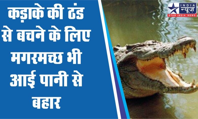 कड़ाके की ठंड से बचने के लिए मगरमच्छ भी आई पानी से बहार