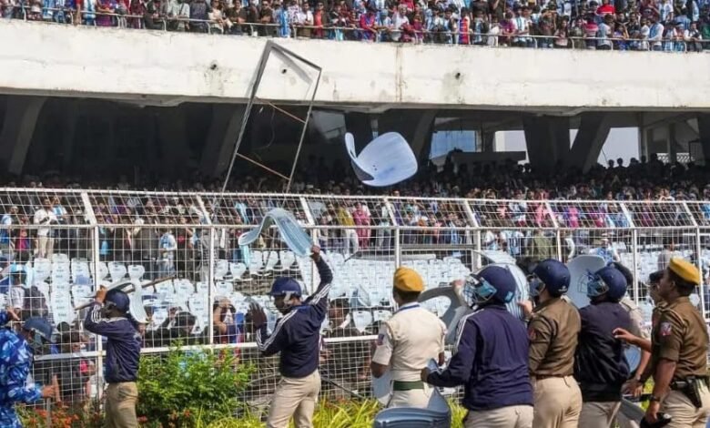 नाराज प्रशंसकों ने कुर्सियां तोड़ीं, बोतलें फेंकीं और स्टेडियम में तोड़फोड़ की