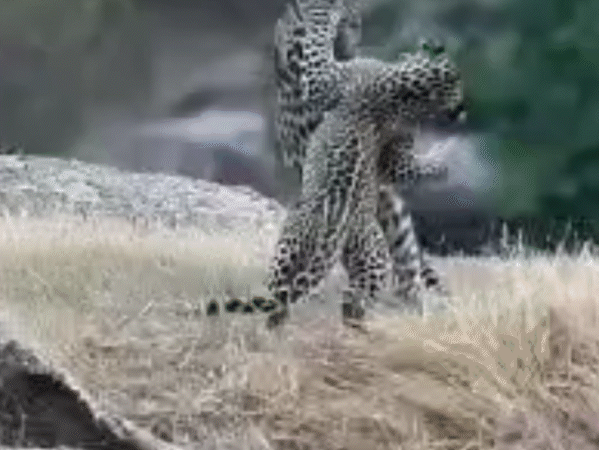 पहाड़ी पर चल रही दोनों वयस्क लेपर्ड की ये मस्ती का दृश्य वन्यजीव प्रेमियों के लिए आकर्षण का केंद्र बन गया है। पर्यटकों ने बिना शोर मचाए इस पूरी घटना को अपने मोबाइल और कैमरों में कैद कर लिया। वीडियो में दोनों लेपर्ड के पीछे मादा लेपर्ड की एक छोटी सी झलक भी देखी जा सकती है।