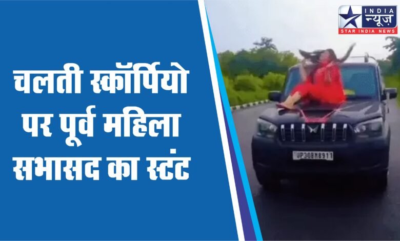 हरदोई में पूर्व सभासद महिला ने थाने के सामने भोजपुरी गाने पर REEL बनाई। सड़क पर रखे पुलिस बैरिकेड्स हटा दिए। चलती स्कॉर्पियो के बोनट पर बैठकर स्टंट किए। पूर्व सभासद किरण बेखौफ होकर वीडियो बनाती रहीं। पुलिसवालों को इसकी भनक तक नहीं लगी।