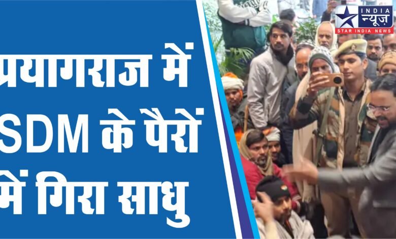 प्रयागराज में SDM के पैरों में गिरा साधु:बोले- जमीन दो या फिर जेल भेज दो; माघ मेले से पहले हंगामा