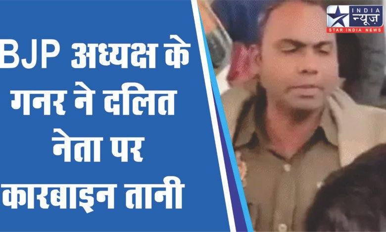 BJP अध्यक्ष के गनर ने दलित नेता पर कारबाइन तानी:अलीगढ़ में क्षेत्रीय अध्यक्ष के सामने भिड़े; बोले- दलित हूं इसलिए ऐसा हुआ