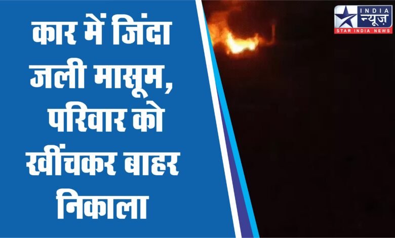 कार में जिंदा जली मासूम, परिवार को खींचकर बाहर निकाला:तेज रफ्तार के कारण पलटी थी, एक घंटे तक फंसे रहे पति-पत्नी और बड़ी बेटी