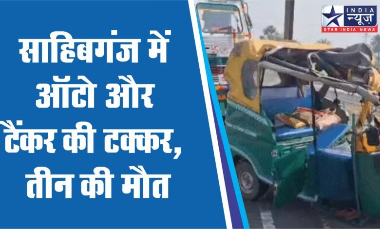 साहिबगंज में शुक्रवार को यात्रियों से भरे एक ऑटो और तेल टैंकर की आमने-सामने भिड़ंत हो गई। इस भीषण सड़क हादसे में एक स्कूली बच्ची समेत तीन लोगों की मौके पर ही मौत हो गई। जबकि तीन बच्चों सहित पांच लोग गंभीर रूप से घायल हो गए।