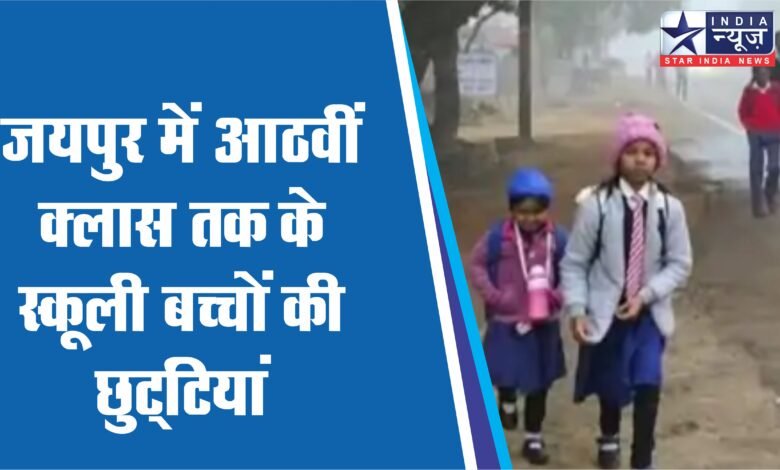 जयपुर में सर्दी बढ़ने से स्कूली बच्चों के लिए राहत की खबर है। जयपुर जिला प्रशासन ने जिले में तेज सर्दी और घने कोहरे को देखते हुए स्कूलों में कक्षा 8वीं तक के बच्चों की छुट्टियां घोषित की हैं। इससे पहले गंगानगर, हनुमानगढ़, बूंदी, बारां समेत कई जिलों में कलेक्टरों ने स्कूलों में छुट्टियां घोषित की।