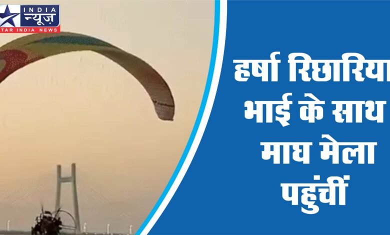 हर्षा रिछारिया भाई के साथ माघ मेला पहुंचीं:संगम में 200 फीट ऊंचाई पर पैराग्लाइडिंग, 5 करोड़ रुद्राक्ष से बन रहा शिवलिंग