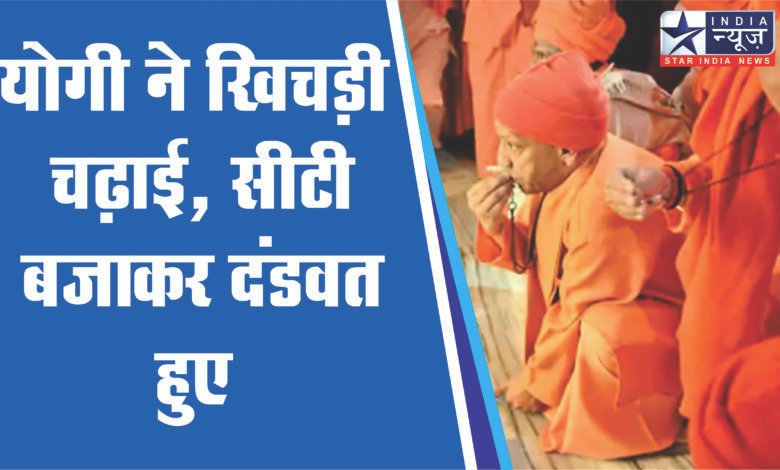 योगी ने खिचड़ी चढ़ाई, सीटी बजाकर दंडवत हुए:गोरखनाथ मंदिर में तड़के 4 बजे पूजा की, अनुज चौधरी भी पहुंचे