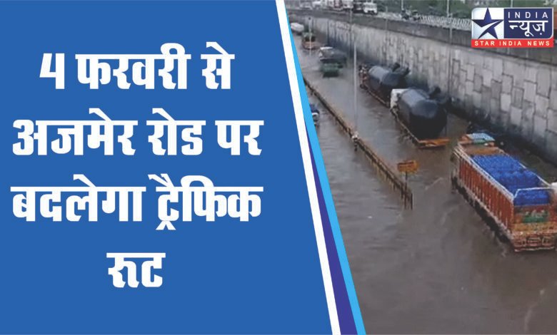 4 फरवरी से अजमेर रोड पर बदलेगा ट्रैफिक रूट:भारी वाहनों का प्रवेश बंद,मानसून से पहले अजमेर रोड पर जलभराव से मिलेगी राहत