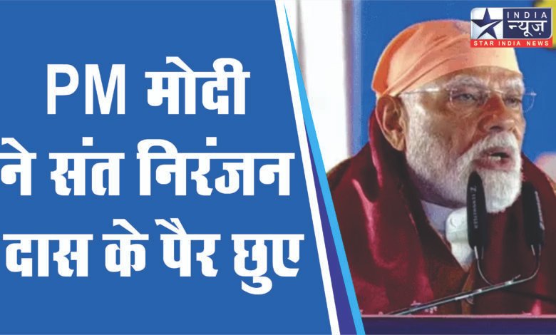 PM मोदी ने संत निरंजन दास के पैर छुए:बोले- पंजाब के कपड़े यूरोप में बिकेंगे; आदमपुर एयरपोर्ट का नाम संत रविदास पर रखा