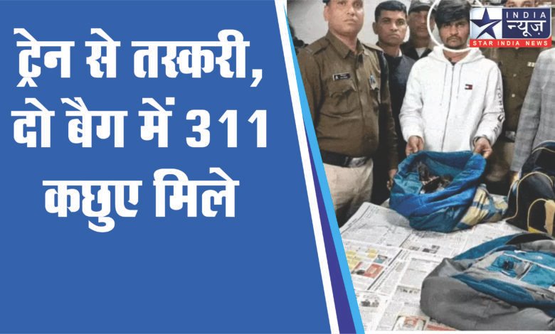 पटना-इंदौर एक्सप्रेस (19322) के एच-1 कोच का अटेंडेंट कछुआ तस्कर निकला। मंगलवार (3 जनवरी) को तलाशी के दौरान आरपीएफ ने उसके दो बैग से 311 जीवित इंडियन टेंट टर्टल बरामद किए हैं।
