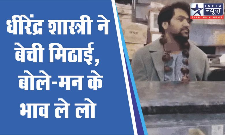 धीरेंद्र शास्त्री ने बेची मिठाई, बोले-मन के भाव ले लो:छतरपुर में आधी रात को दुकान की गद्दी पर जा बैठे; रसगुल्ला-रसमलाई का स्वाद लिया