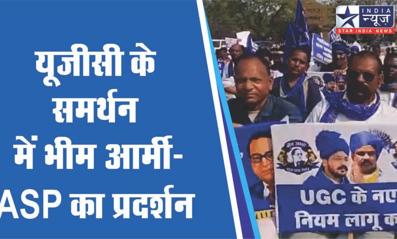 भीम आर्मी भारत एकता मिशन और आजाद समाज पार्टी (कांशीराम) ने यूजीसी के समर्थन में भोपाल में प्रदर्शन किया। पार्टी के कार्यकर्ता अंबेडकर जयंती मैदान पर इकट्ठे हुए। भीम आर्मी के प्रदेश अध्यक्ष सुनील बैरसिया, पूर्व प्रदेश अध्यक्ष सुनील अस्तेय, पूर्व विधायक आरडी प्रजापति, दलित पिछड़ा समाज संगठन के अध्यक्ष दामोदर यादव मौजूद रहे।
