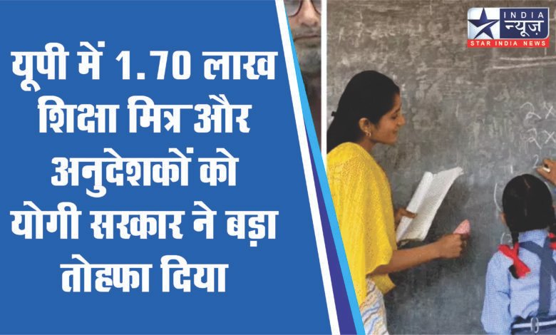 यूपी में 1.70 लाख शिक्षा मित्र और अनुदेशकों को योगी सरकार ने बड़ा तोहफा दिया है। शिक्षा मित्रों को अब 18 हजार और अनुदेशकों को 17 हजार रुपए हर महीने मिलेंगे। अभी तक शिक्षा मित्रों को 10 और अनुदेशकों को 9 हजार रुपए ही मिल रहे थे।