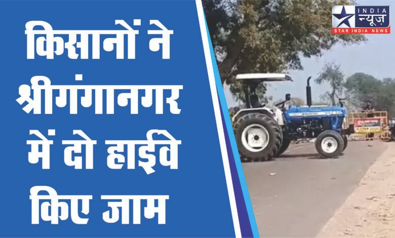किसानों ने श्रीगंगानगर में दो हाईवे किए जाम:साढ़े चार घंटे तक बंद रहा रास्ता; 26 फरवरी को करेंगे महापड़ाव