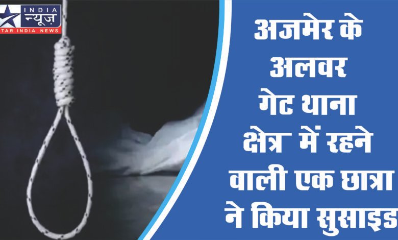 अजमेर के अलवर गेट थाना क्षेत्र में रहने वाली एक छात्रा ने घर पर फांसी का फंदा लगाकर सुसाइड कर लिया। परिवार ने जब उसे फंदे पर लटका देखा तो हड़कंप मच गया। छात्रा को फंदे से उतारकर परिवार के लोग जेएलएन अस्पताल लेकर पहुंचे। जहां डॉक्टर ने उसे मृत घोषित कर दिया। सूचना पर अलवर गेट थाना पुलिस मौके पर पहुंच गई।