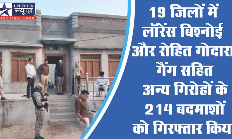 19 जिलों में लॉरेंस बिश्नोई और रोहित गोदारा गैंग सहित अन्य गिरोहों के 214 बदमाशों को गिरफ्तार किया