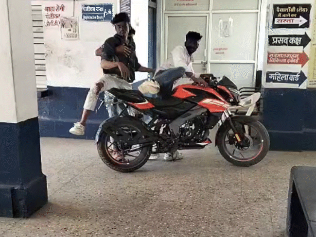 खंडवा जिले के मूंदी सामुदायिक स्वास्थ्य केंद्र में ‘3 इडियट्स’ जैसा सीन:घायल को बाइक सहित इमरजेंसी वार्ड तक ले गए युवक, तत्काल इलाज से बची जान