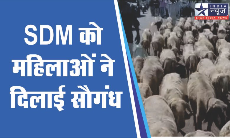 SDM को महिलाओं ने दिलाई सौगंध; चारागाह बचाने भेड़-बकरियां लेकर प्रदर्शन