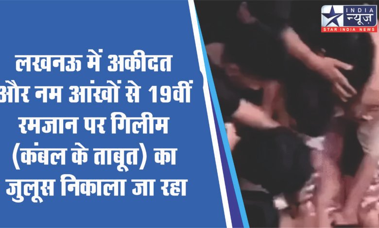 लखनऊ में अकीदत और नम आंखों से 19वीं रमजान पर गिलीम (कंबल के ताबूत) का जुलूस निकाला जा रहा है। 4 किलोमीटर लंबे जुलूस में हजारों की संख्या में शिया समुदाय के लोग शामिल हुए। पुरुष-महिलाओं से लेकर बच्चों और बुजुर्ग तक, सभी काले कपड़े पहनकर पहुंचे।