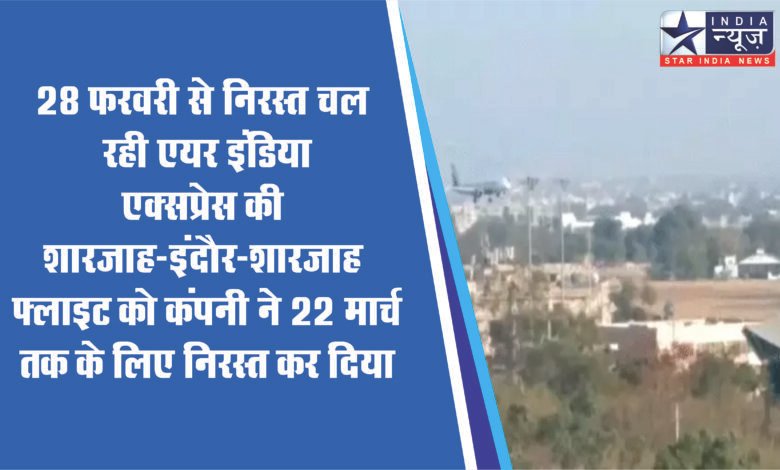 28 फरवरी से निरस्त चल रही एयर इंडिया एक्सप्रेस की शारजाह-इंदौर-शारजाह फ्लाइट को कंपनी ने 22 मार्च तक के लिए निरस्त कर दिया