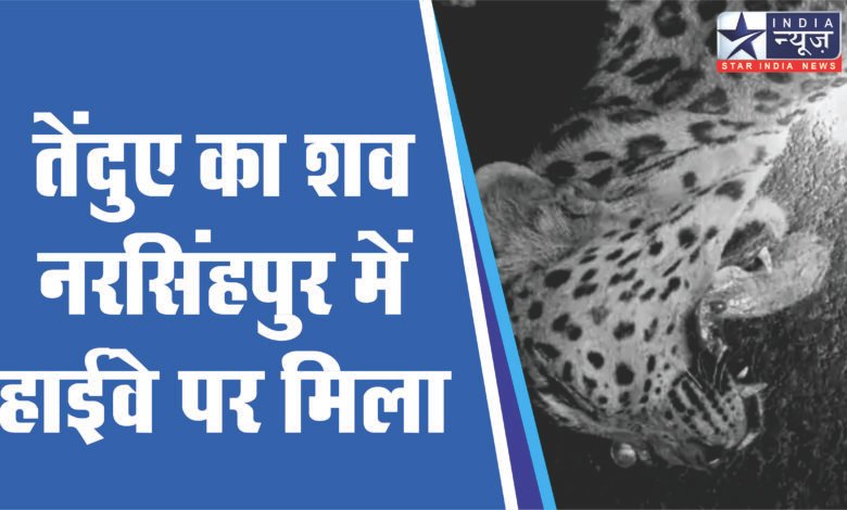 तेंदुए का शव नरसिंहपुर में हाईवे पर मिला:वाहन की टक्कर से मौत की आशंका, 3 साल का था