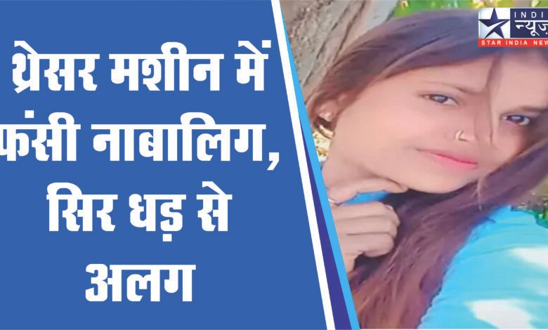 उदयपुर में थ्रेसर मशीन में फंसने से 17 साल की नाबालिग की मौत हो गई। मशीन में गेहूं की पुली डालते समय नाबालिग का दुपट्टा अचानक मशीन में आ गया। दुपट्टे के साथ उसका सिर मशीन के अंदर धीरे-धीरे खिंचता चला गया।