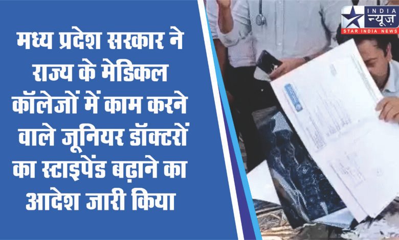 मध्य प्रदेश सरकार ने राज्य के मेडिकल कॉलेजों में काम करने वाले जूनियर डॉक्टरों का स्टाइपेंड बढ़ाने का आदेश जारी किया