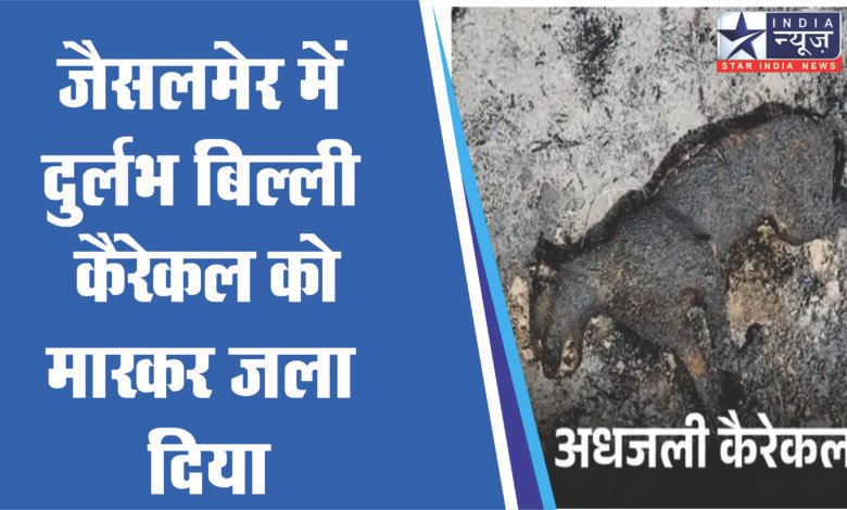 जैसलमेर में दुर्लभ बिल्ली कैरेकल को मारकर जला दिया:वीडियो बनाकर सोशल मीडिया पर डाला; अधजला शव बरामद, 3 गिरफ्तार