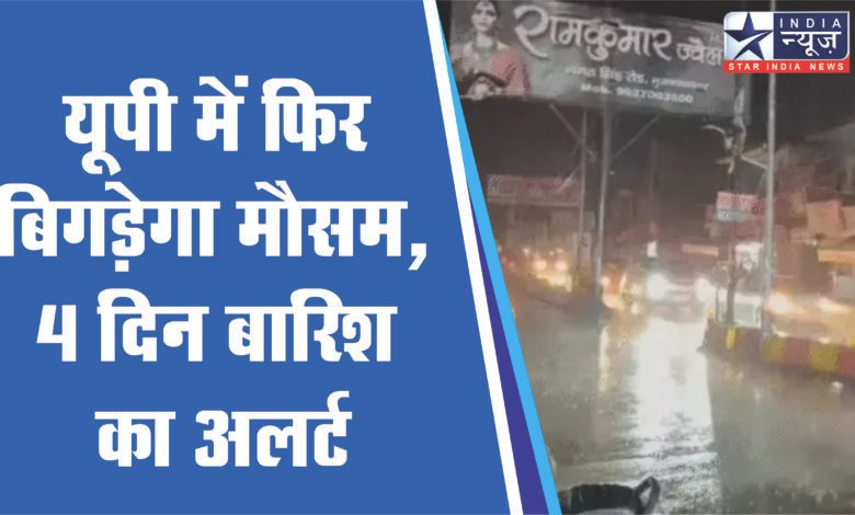 यूपी में फिर बिगड़ेगा मौसम, 4 दिन बारिश का अलर्ट:आंधी चलेगी, बिजली भी गिर सकती है; 48 घंटे में 3°C लुढ़का पारा