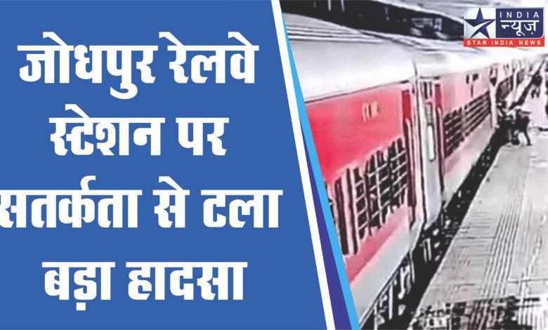जोधपुर रेलवे स्टेशन पर सोमवार को बड़ा हादसा होने से टल गया। इसका वीडियो मंगलवार देर शाम को सामने आया। साबरमती-जम्मूतवी एक्सप्रेस में चढ़ने के प्रयास में एक महिला यात्री का पैर फिसल गया। वह प्लेटफॉर्म और चलती ट्रेन के बीच गिर गई। वहां मौजूद रेलवे सुरक्षा बल (आरपीएफ) की महिला कॉन्स्टेबल नवीन ने तत्परता दिखाते हुए तुरंत यात्री को बाहर खींचकर नया जीवनदान दिया।