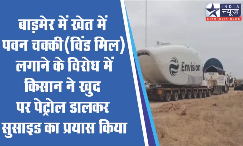 बाड़मेर में खेत में पवन चक्की(विंड मिल) लगाने के विरोध में किसान ने खुद पर पेट्रोल डालकर सुसाइड का प्रयास किया