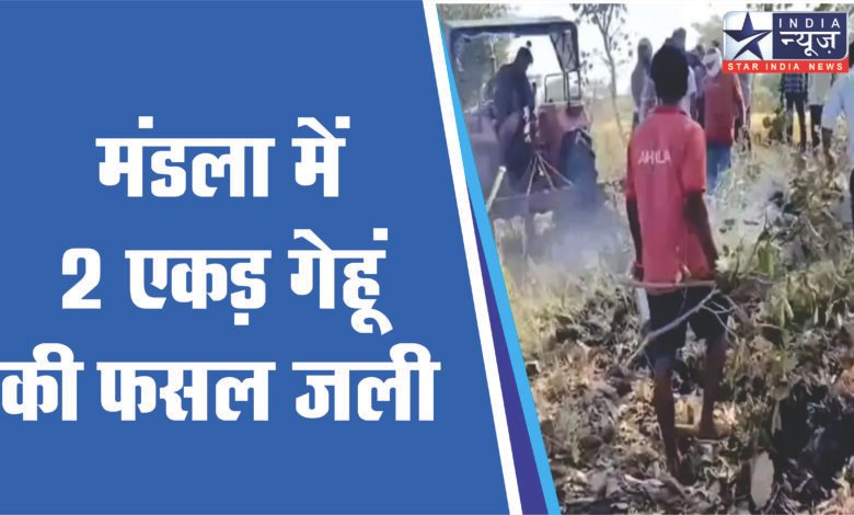 मंडला में 2 एकड़ गेहूं की फसल जली:जवारे विसर्जन के लिए जुटे लोग आग की खबर पर खेत की ओर दौड़े