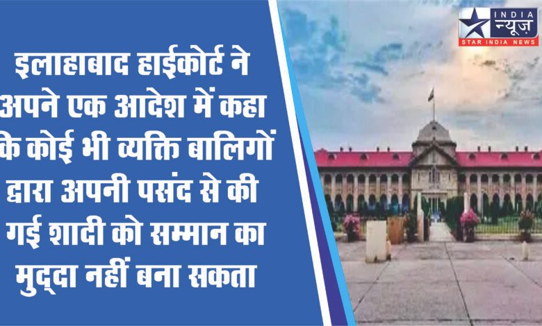 इलाहाबाद हाईकोर्ट ने अपने एक आदेश में कहा कि कोई भी व्यक्ति बालिगों द्वारा अपनी पसंद से की गई शादी को सम्मान का मुद्दा नहीं बना सकता