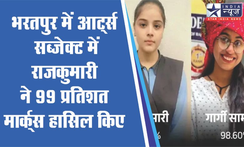 भरतपुर में आट्र्स सब्जेक्ट में राजकुमारी ने 99 प्रतिशत मार्क्स हासिल किए हैं। राजकुमारी भरतपुर जिले के नगला मनका स्थित गवर्मेंट सीनियर सेकेंडरी स्कूल में पढ़ती हैं। राजकुमारी के पिता जयपुर में टैक्सी चलाते हैं। राजकुमारी टीचर बनना चाहती हैं। राजकुमारी ने बताया कि उन्होंने बिना ट्यूशन पढ़े इतने मार्क्स हासिल किए हैं। उनके गांव में ट्यूशन की कोई सुविधा नहीं है।