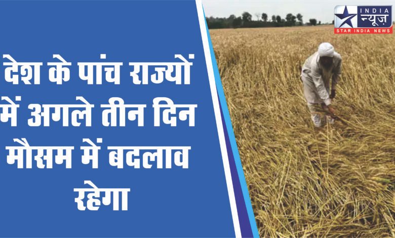देश के पांच राज्यों में अगले तीन दिन मौसम में बदलाव रहेगा। मध्य प्रदेश के 30 और उत्तर प्रदेश के 40 जिलों में आज बारिश का अलर्ट है। बुधवार को उत्तर प्रदेश के लखनऊ और अमेठी समेत 20 शहरों में बारिश हुई।