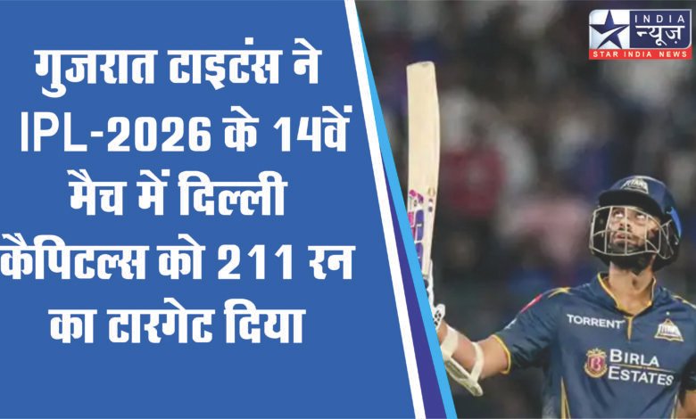 गुजरात टाइटंस ने IPL-2026 के 14वें मैच में दिल्ली कैपिटल्स को 211 रन का टारगेट दिया है। दिल्ली ने अरुण जेटली स्टेडियम में टॉस जीतकर गेंदबाजी चुनी। गुजरात ने पहले बल्लेबाजी करते हुए 20 ओवर में 4 विकेट पर 210 रन बनाए।