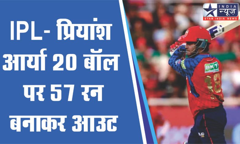 इम्पैक्ट प्लेयर प्रियांश आर्या 20 बॉल पर 57 रन बनाकर आउट हुए। उन्हें शिवांग कुमार ने नीतीश कुमार रेड्डी के हाथों कैच कराया। इसी के साथ ओपनिंग पार्टनरशिप ब्रेक हुई।