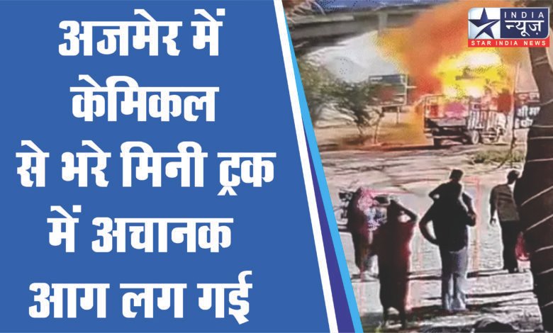 अजमेर में केमिकल से भरे मिनी ट्रक में अचानक आग लग गई। देखते ही देखते खड़ा ट्रक आग का गोला बन गया। पास के रेस्टोरेंट में चाय पी रहा ड्राइवर तुरंत दौड़ कर आया और जलते ट्रक को स्टार्ट कर आबादी क्षेत्र से करीब 100 मीटर दूर खाली स्थान पर ले गया। इससे कोई जनहानि नहीं हुई। घटना श्रीनगर थाना क्षेत्र में कानाखेड़ी की शनिवार सुबह 10 बजे की है।