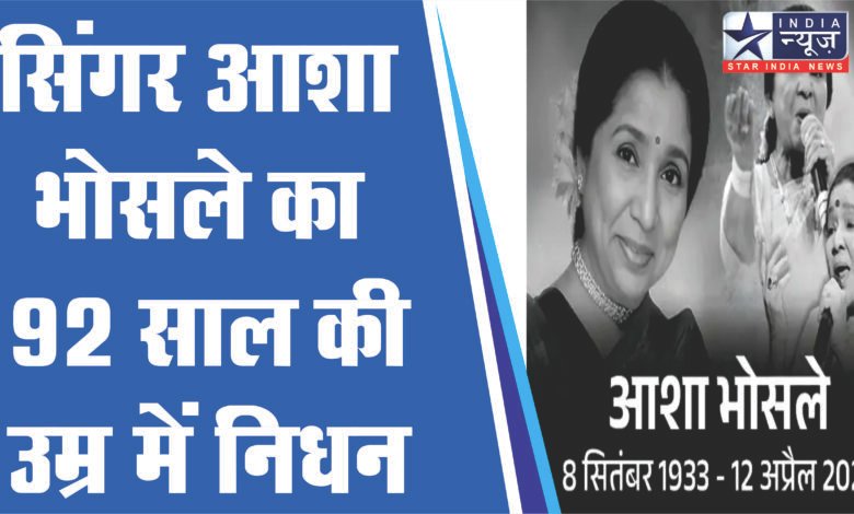 सिंगर आशा भोसले का 92 साल की उम्र में निधन हो गया है। रविवार दोपहर मुंबई के ब्रीच कैंडी अस्पताल में उन्होंने अंतिम सांस ली। उन्हें शनिवार शाम को यहां भर्ती किया गया था।