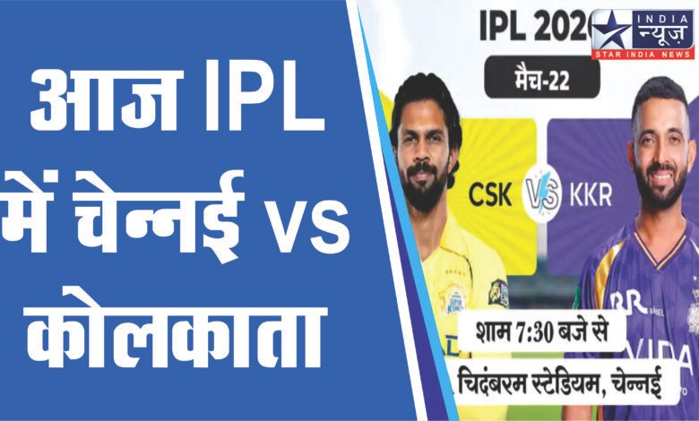 IPL के इस सीजन के 22वें मैच में आज चेन्नई सुपर किंग्स (CSK) का सामना कोलकाता नाइट राइडर्स (KKR) से होगा। मैच चेन्नई के MA चिदंबरम स्टेडियम (चेपॉक) में शाम 7:30 बजे से शुरू होगा, जबकि टॉस 7:00 बजे होगा।