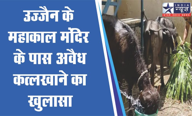 उज्जैन के महाकाल मंदिर के पास अवैध कत्लखाने का खुलासा:छापे में काटने के लिए लाए गए बछड़े, मांस सहित धारदार हथियार बरामद; दो आरोपी गिरफ्तार