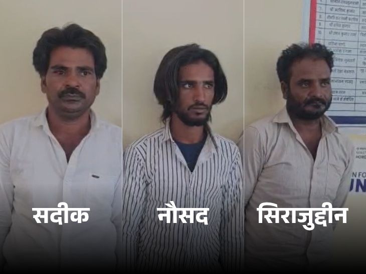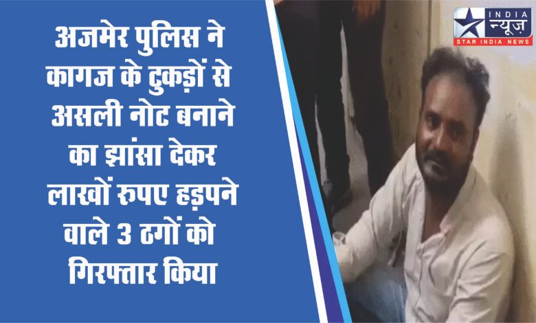 अजमेर पुलिस ने कागज के टुकड़ों से असली नोट बनाने का झांसा देकर लाखों रुपए हड़पने वाले 3 ठगों को गिरफ्तार किया:1 लाख के बदले 3 लाख देने का देते थे झांसा, पुलिस ने 3 आरोपियों को पकड़ा