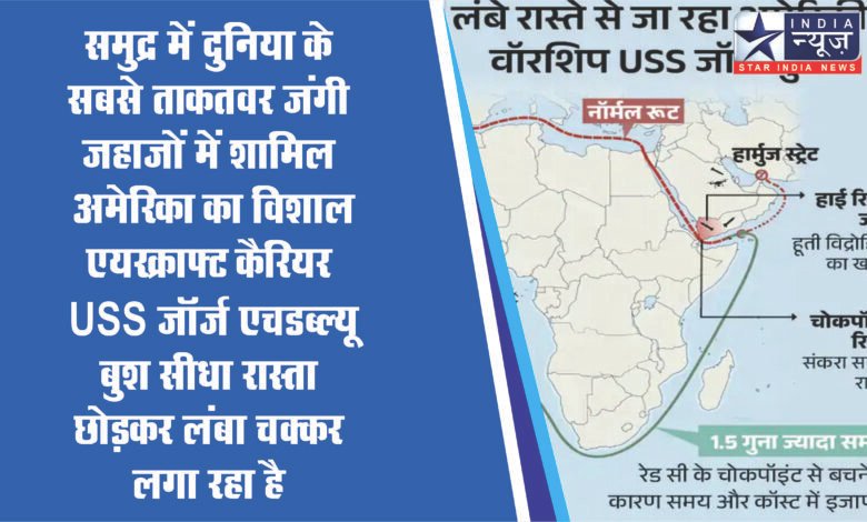 समुद्र में दुनिया के सबसे ताकतवर जंगी जहाजों में शामिल अमेरिका का विशाल एयरक्राफ्ट कैरियर USS जॉर्ज एचडब्ल्यू बुश सीधा रास्ता छोड़कर लंबा चक्कर लगा रहा है