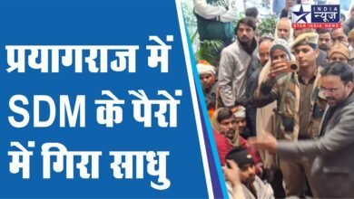 प्रयागराज में SDM के पैरों में गिरा साधु:बोले- जमीन दो या फिर जेल भेज दो; माघ मेले से पहले हंगामा